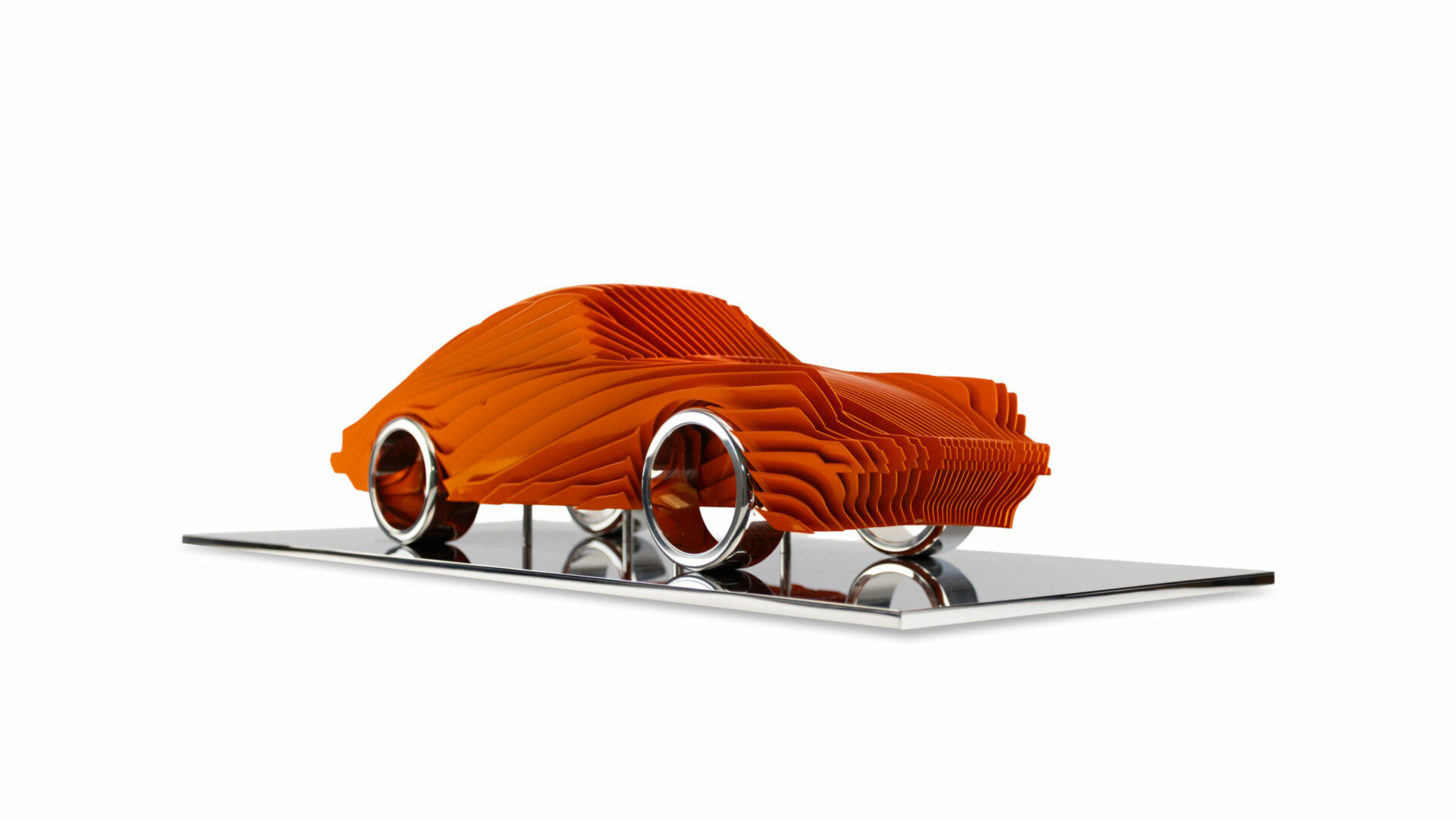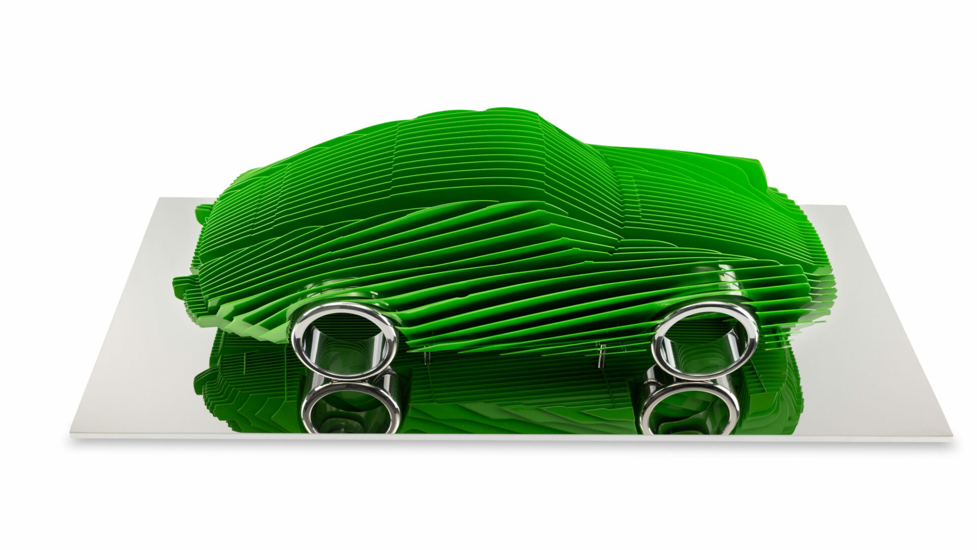 Pour cette interprétation de la Porsche Type G, j’ai travaillé autour d’une double séquence de plaques de métal afin de révéler autrement la tension et l’équilibre de ce modèle emblématique.